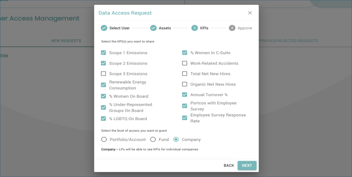 GPs retain full control over what and how they share data: selecting the funds, PortCos, and metrics they would like to share