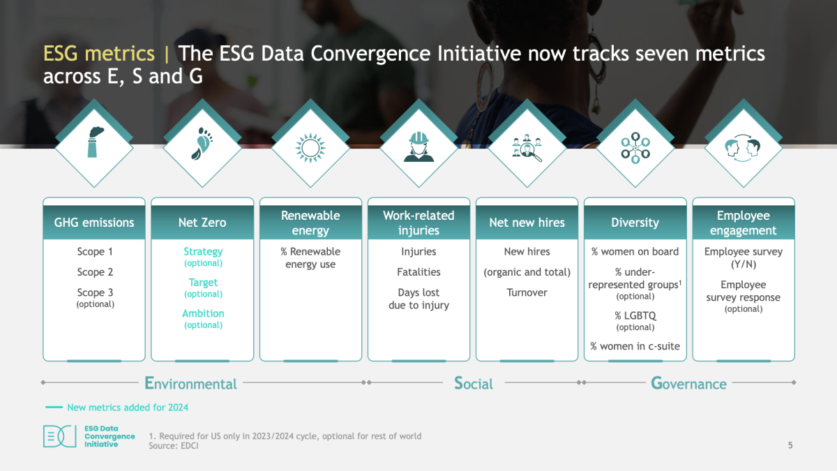 - Be publicly recognized as a participant of the ESG Data Convergence Initiative.