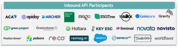 ESG platforms that have connected to the EDCI’s inbound API to help submit data are: